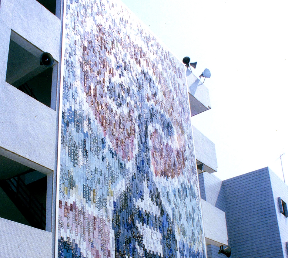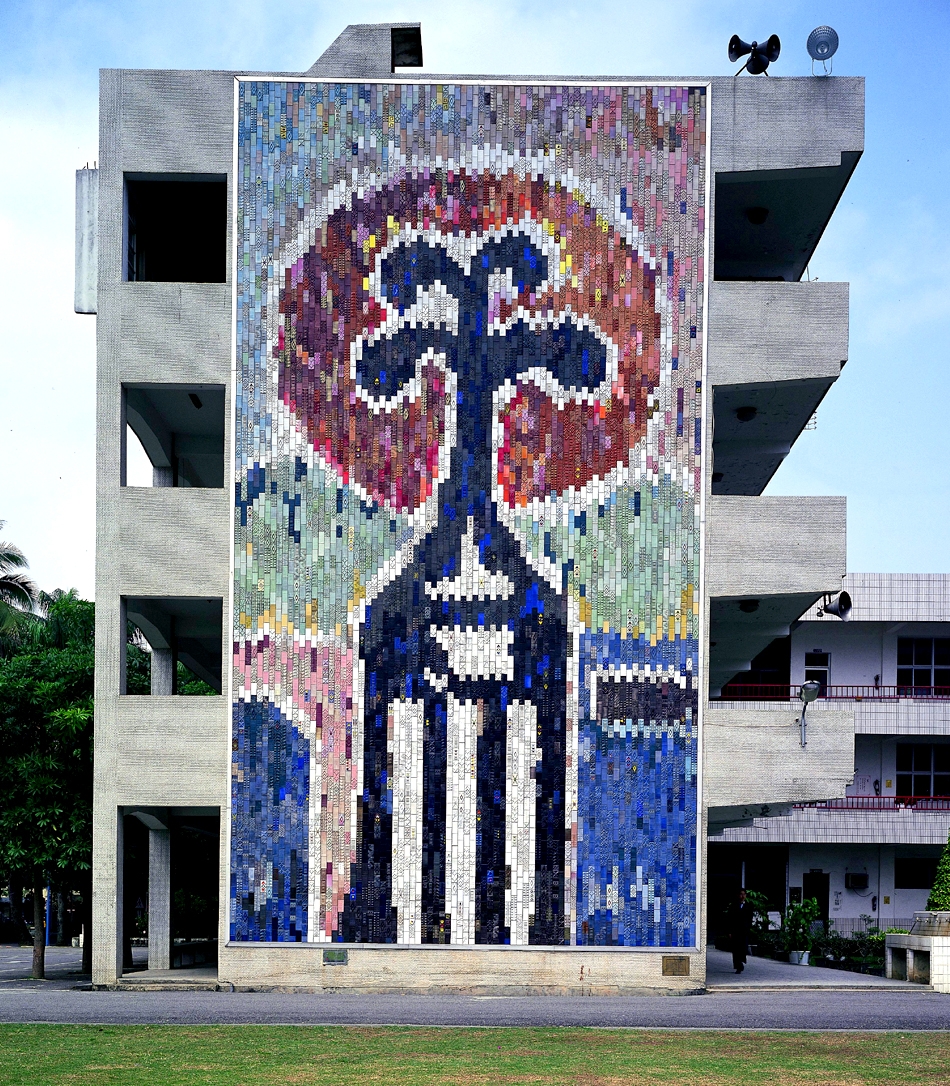 為莘莘學子留下一點文化的省思,為後代子孫留下一兮藝術的慕情。以1260℃中燒結出的陶片拼湊出屏東排灣族和魯凱族的圖騰,那瑰麗的色澤,純屬火與泥土生命力的表現,主題的構思表現了家中特有的素質與精神,日出的山崗,嘉中稱它為「旭陵」;風情萬種、亭亭如蓋的雨豆,嘉中人封它為「校樹」,「旭陵」和「校樹」便成了這座藝術陶壁的主角,牽動每一個嘉中人的心,對被譏為文化沙漠的嘉義注入了一股生氣。