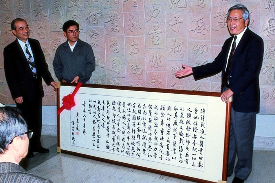 由時任醫學院院長黃崑巖先生執筆書寫的醫師誓詞完整呈現於陶壁上,每一位即將成為正式實習醫師的成大醫學院學生都會在此陶壁前舉手宣誓。