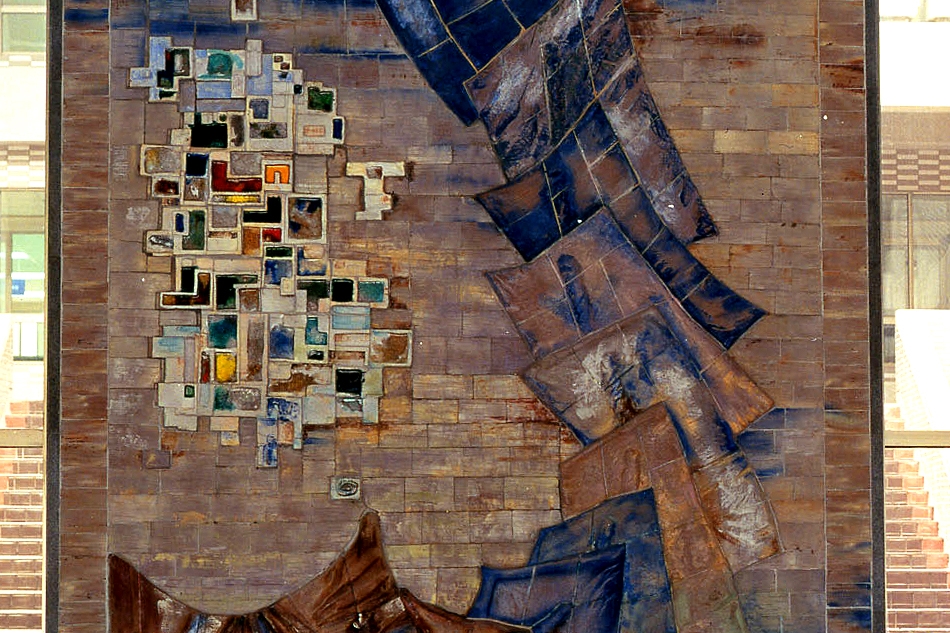 1989年完成,是朱邦雄博士的第一面藝術陶壁,也是國內第一座結合建築和大型藝術的作品,陶壁採「傳承」概念,以「補破鍋」的民俗呈現,一片片鐵片象徵一代接一代的傳承。