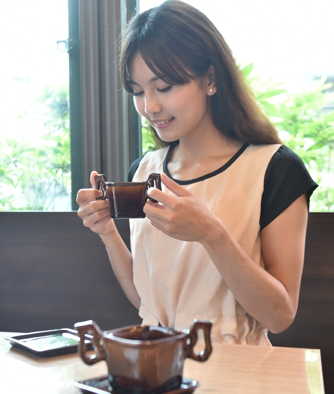 【美濃窯】 特色禮品,以中國古代酒樽造型盛裝西式咖啡,中西合併造就出雙手持杯的獨特啜飲樂趣!